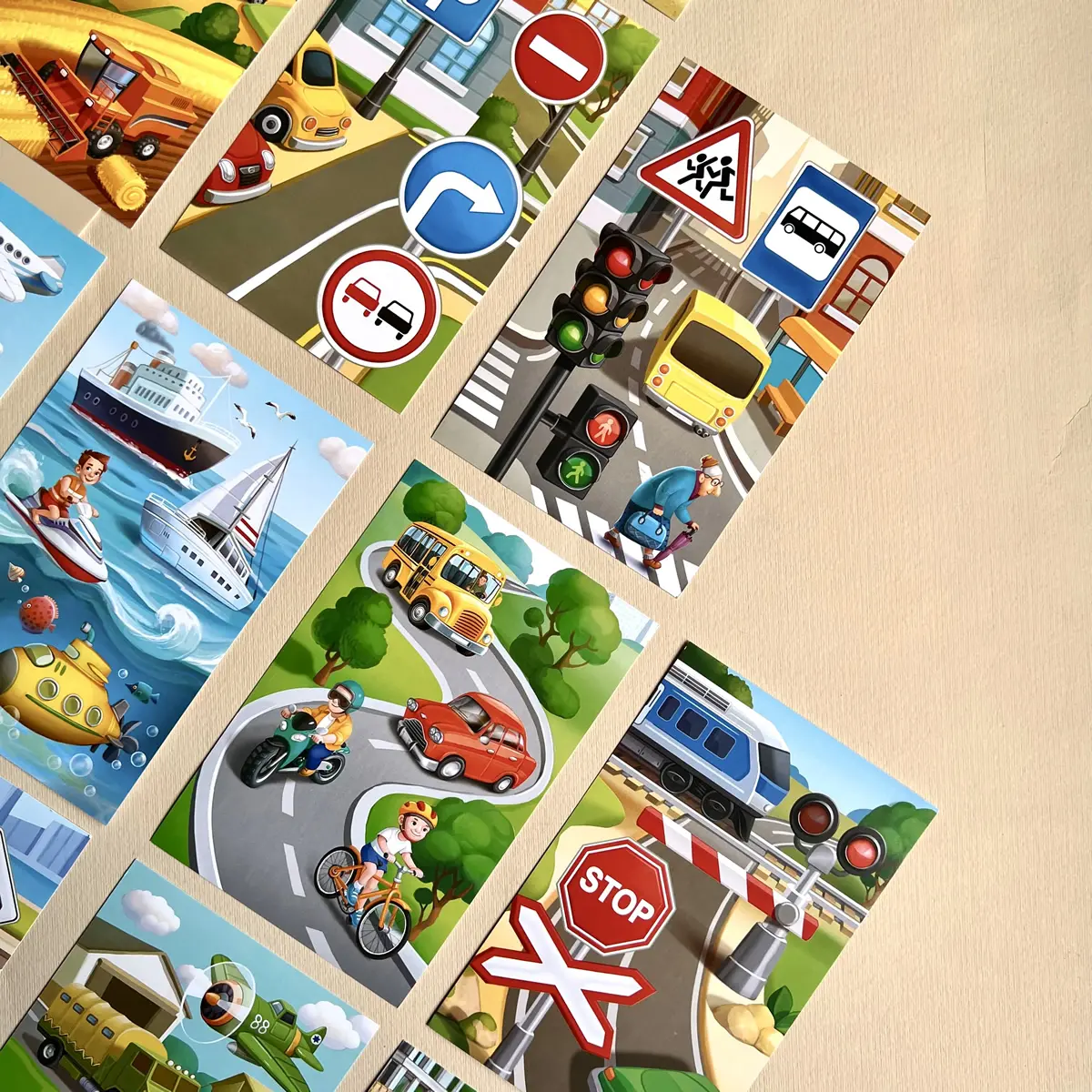 — 13 Spieltafeln mit verschiedenen Fahrzeugmotiven